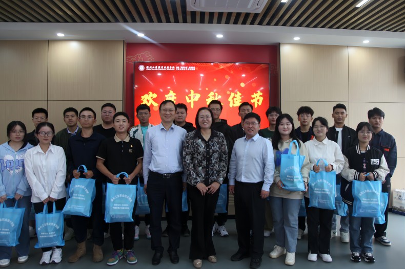 会上,校领导向学生代表送上节日慰问品,并合影留念。