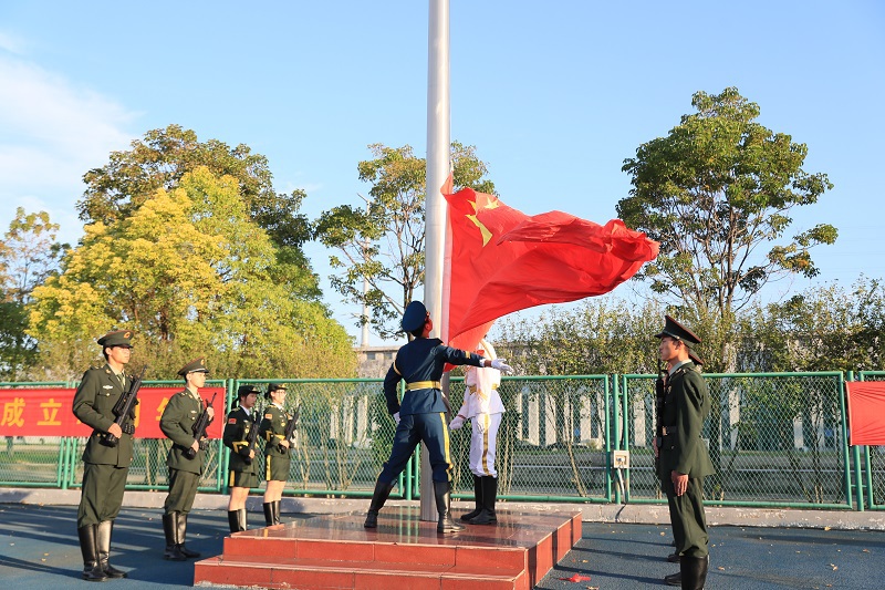 晨光熹微,微风沁人。7时整,在雄壮、激昂的国歌声中,鲜艳的五星红旗冉冉升起,迎风飘扬。在场的全体人员庄严地向国旗行注目礼,高唱国歌,向伟大祖国致以崇高的敬意和美好的祝福。