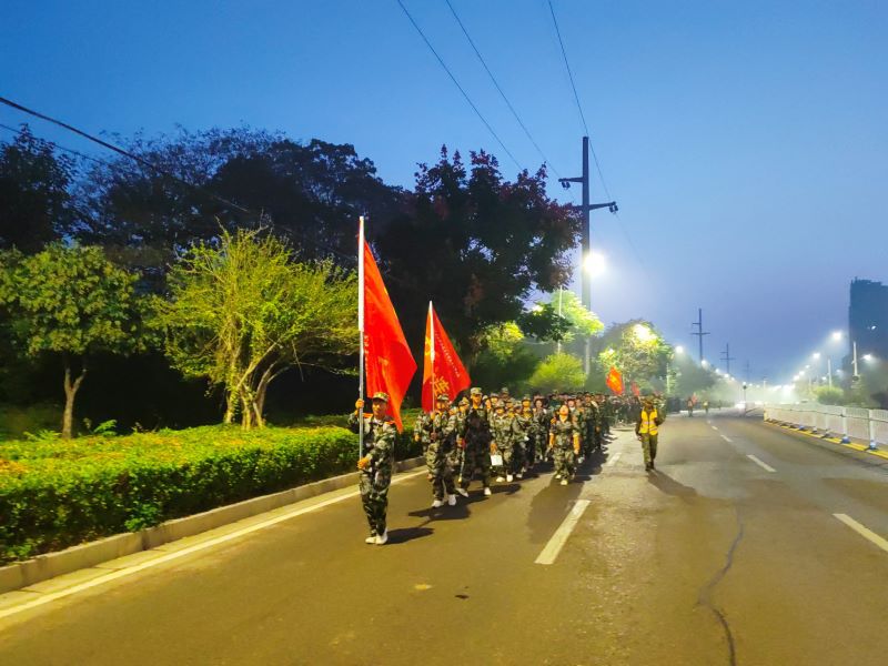 凌晨1点,军训团1-7营共3645名2023级新生按照指定地点迅速完成集结,鲍桂楠向军训团发出行进令。各营高举营、连旗,踏着整齐步伐、高喊口号,从捕鱼达人破解版 东门出发,穿过九里山隧道,沿九里山古战场南岸荆马河路一路向东挺进,经中山北路,转向沈孟大道进入驻徐某部营区,在营区休整并参观相关武器装备,然后原路返回,全程约16公里,共历时5小时。