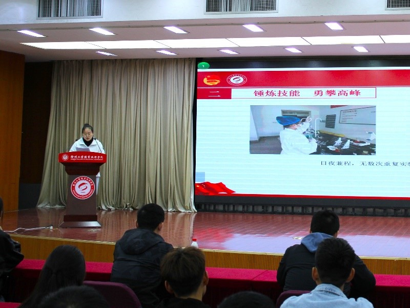 项目展演过程中,化学工程学院姜雪程同学作为今年在中华人民共和国第二届职业技能大赛中的金牌获得者,她从思想情况、学业情况及备战经验等方面与大家分享了自己的成长与收获,提供了宝贵的学习经验,激励着同学们在实践中砥砺才干、增长本领。