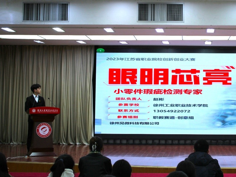 信息工程学院赵彬同学分享了他曾参与的团队项目——“眼明芯亮小零件瑕疵检测专家”,该项目曾获得荣获2023年江苏省职业院校创新创业大赛一等奖,是对YOLOv4-tiny、以及对传统瑕疵检测机的视觉采集系统、导向传送系统等方面的改进,解决了目前市面上的瑕疵检测机对冲压件零件瑕疵检测的难点。