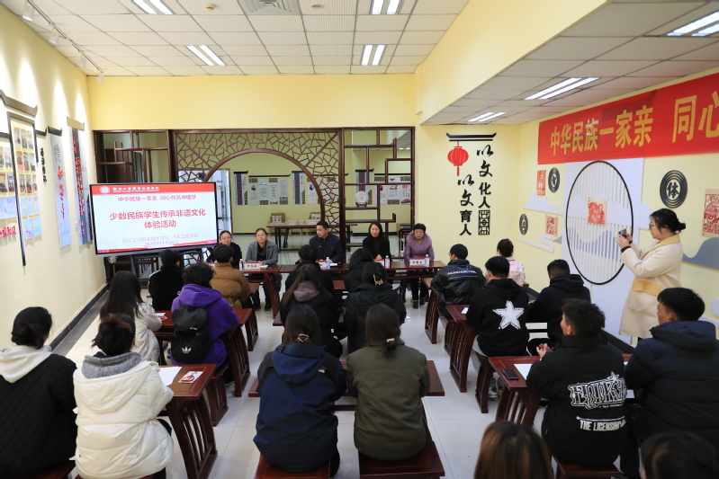 付斌在讲话中指出,中国梦是56个民族共同的梦,民族团结则是成就梦想的有力保障。组织开展“中华民族一家亲同心共筑中国梦”非遗文化传承体验活动系列活动,旨在促进各民族交往、交流、交融,希望大家在活动中进一步了解中华优秀传统文化,各民族同学之间相互支持、互相帮助,共谱民族团结之花。