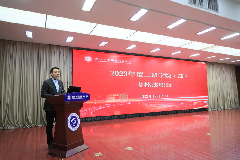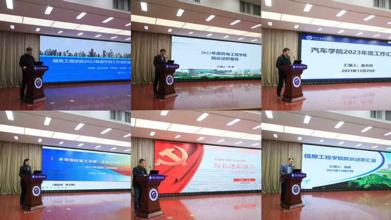 在二级学院(部)考核述职评议会议上,11个二级院(部)长依次进行年度工作述职,对照各自建设目标和任务,重点围绕工作成效、特色亮点、存在问题和下一步重点工作事项等方面进行展示。