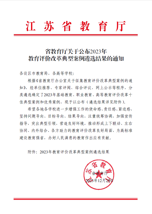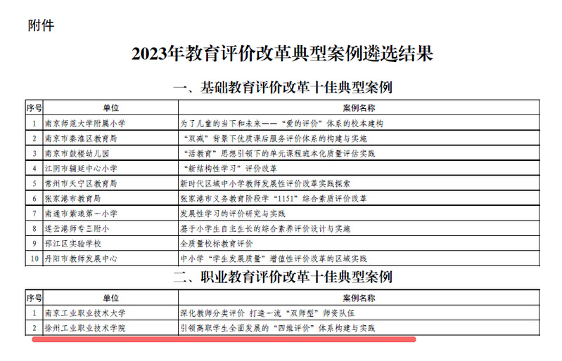 近日,江苏省教育厅发布《省教育厅关于公布2023年教育评价改革典型案例遴选结果的通知》,捕鱼达人破解版 选送的关于学生评价的案例《引领高职学生全面发展的“四维评价”体系构建与实践》获评职业教育评价改革十佳典型案例,这是捕鱼达人破解版 首次入选。据悉,全省共遴选81个优秀案例,其中职业教育27个,在此基础上综合评议,最终评出十佳典型案例。