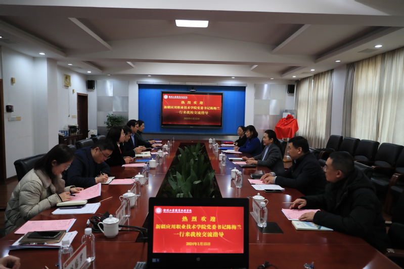 1月15日,新疆应用职业技术学院党委书记陈梅兰、副院长刘庆新(援疆)和科研处、石油与化学工程学院、党委办公室等部门有关同志一行5人来捕鱼达人破解版 就人才培养、科技援疆、柔性人才选派等工作进行交流。捕鱼达人破解版 党委书记刘莹,副院长张芳儒,党政办、教务部、学工部、科产部、化工学院等相关部门负责人和部分援疆教师参加座谈交流。