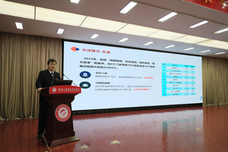 在图书馆报告厅召开2023年招生工作总结表彰暨2024年招生工作布置会,校领导班子成员、党委委员出席会议,校招生工作领导小组成员,招生责任主体负责人,二级学院(部)领导班子成员和招生团队主要人员参会,会议由纪委书记葛志亮主持。