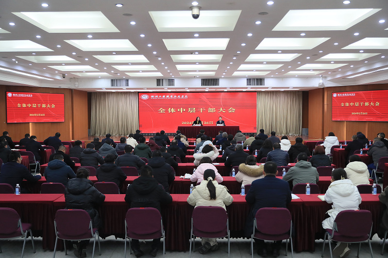 2月26日下午,捕鱼达人破解版 在图书馆多功能厅召开新学期全体中层干部大会,部署2024年重点工作。全体校领导、党委委员、中层干部参加了会议。党委书记刘莹主持大会并作总结讲话,院长鲍桂楠部署年度重点工作任务。