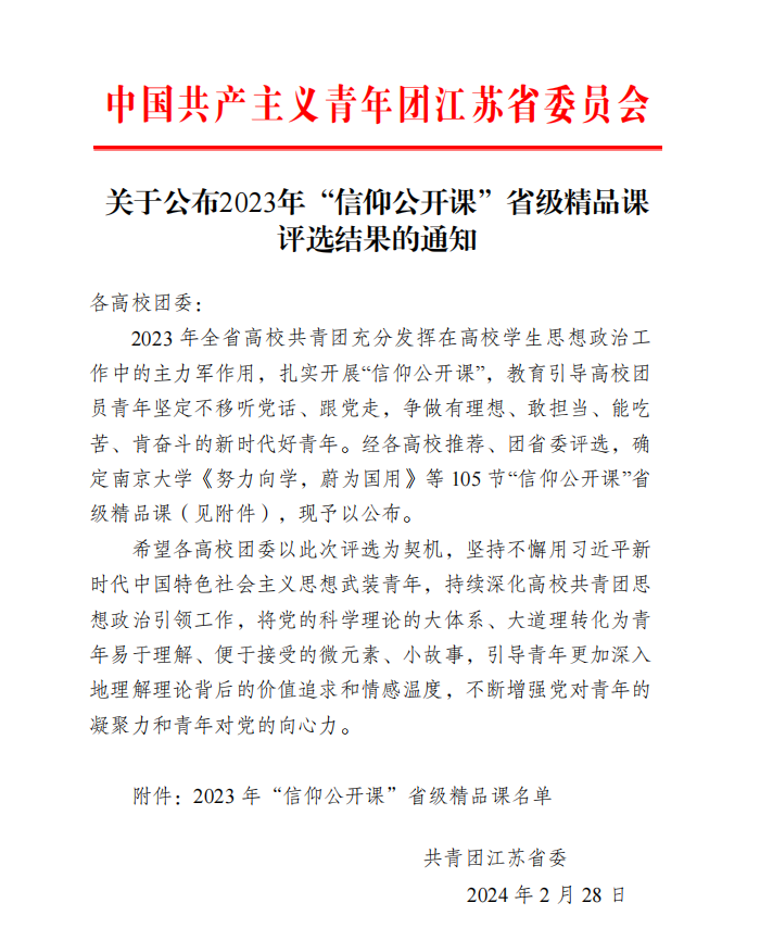 近日,共青团江苏省委公布了2023年全省高校“信仰公开课”省级精品课评选结果,共评出105节“信仰公开课”省级精品课,捕鱼达人破解版 报送课程获评省级精品课。