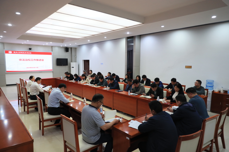 4月15日下午,捕鱼达人破解版 在图书馆视频会议室召开依法治校工作推进会,党委副书记、校长鲍桂楠主持会议。相关职能部门负责人和各党总支、直属党支部书记参加了会议。