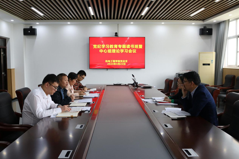 4月22日,机电工程学院党总支在B16-305召开党纪学习教育专题读书班暨中心组理论学习会,学院党总支全体委员参加,会议由党总支书记王敏主持。