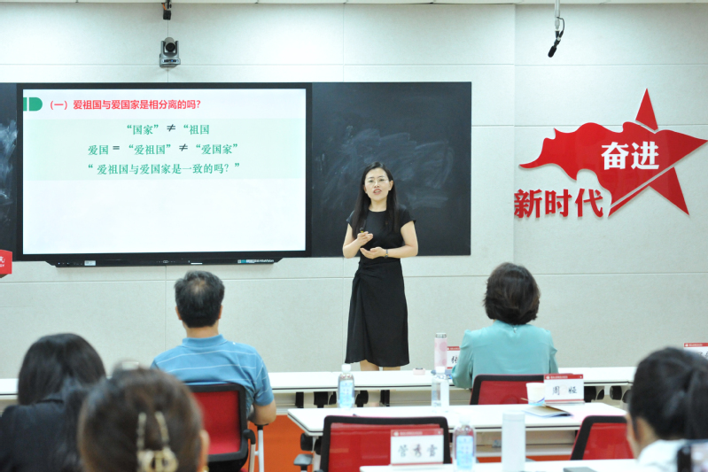 随后在教学展示环节,九龙湖小学李昕烨老师、崇信捕鱼达人破解版 康倩玉老师、徐州市第二中学秦淑艳老师、捕鱼达人破解版 马克思主义学院谢玉龙副教授、江苏师范大学管秀雪教授围绕“爱国主义”教学章节分别进行了小学、初中、高中、大学、研究生学段的思政课教学展示。