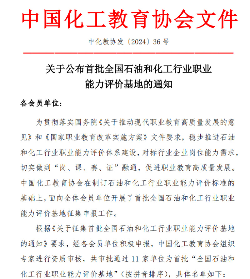 为深入学习宣传贯彻党的二十大精神和全国职业教育大会精神,深刻把握职业教育面临的新形势新要求,充分发挥行业在职业教育教学改革和质量提升中的指导作用,推动石化行业职业教育高质量发展,7月12日,中国化工教育协会、全国石油和化工职业教育教学指导委员会在江苏省连云港市举办2024年石油和化工职业教育高质量发展大会暨全国石油和化工职业教育教学指导委员会工作会议。