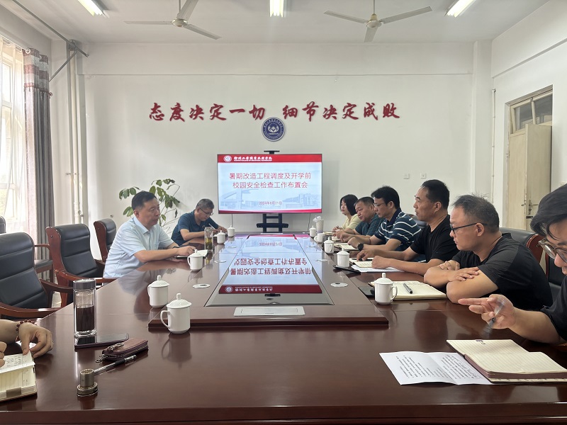 8月21日上午,副校长孙健身在B02-310召开暑期改造工程调度及开学前校园安全检查工作部署会。党政办、后勤服务中心、国资处、保卫处、资产经营公司等相关职能部门负责人参加会议。