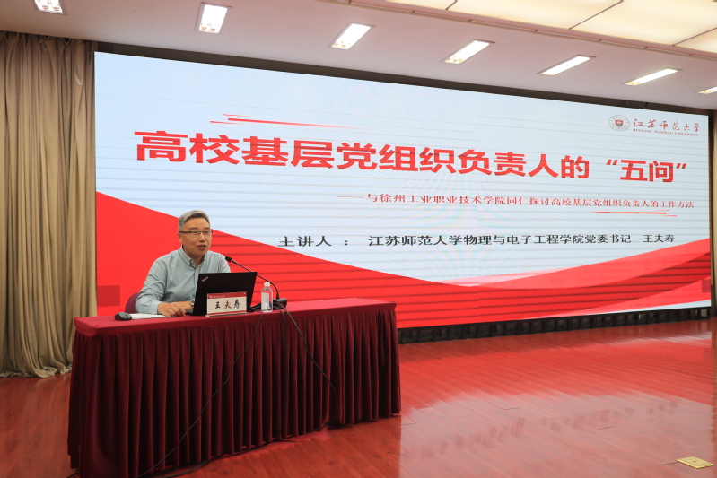 讲座中,王夫寿以《高校基层党组织负责人的“五问”》为题,从班子建设、制度落实、带好队伍、服务发展、作风建设等方面进行了讲述。并结合工作实践,运用丰富翔实的具体案例,对基层党组织负责人工作方法进行了授课。