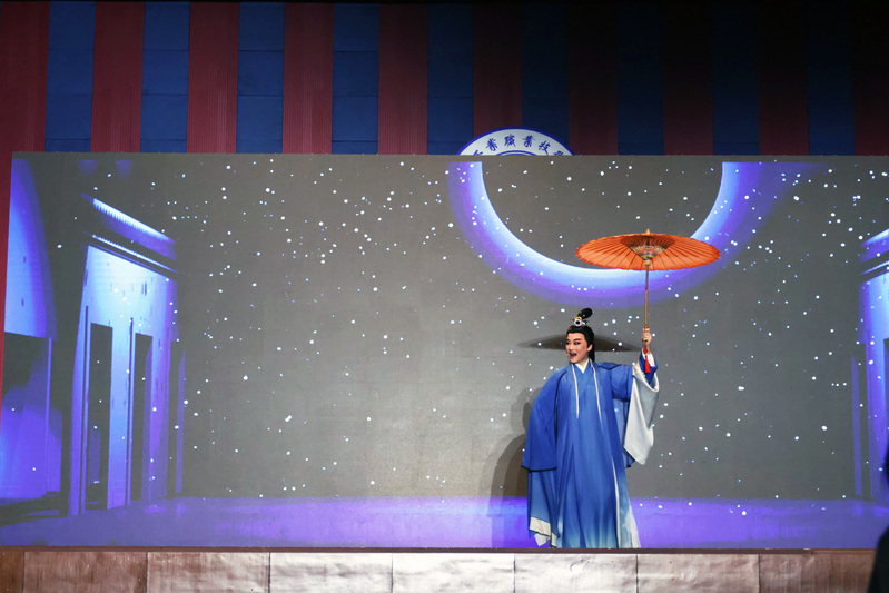 “江南灵秀出莺唱,啼笑喜怒成隽永。”作为中国第二大剧种,越剧长于抒情,以唱为主,声腔清悠婉丽、表演真切动人,唯美典雅,极具江南灵秀之气,令人如痴如醉,百听不厌。而折子戏,是本戏里的一折或一出,以人民群众喜闻乐见的方式塑造鲜活生动的人物形象,展示相对完整的故事,在结构安排上,往往别出心裁,不落俗套。南京市越剧团的青年演员们为学生们奉上了《秀才遇仙记·遇仙》《梁祝·十八相送》《乌衣巷·访郗》《红楼梦・葬花》等六段家喻户晓的越剧名段。精美的舞台布置、细腻的人物表演、动人的故事情节,让现场观众沉浸在剧情中,时而为剧中人物的命运担忧,时而为他们的离合悲欢而感动。