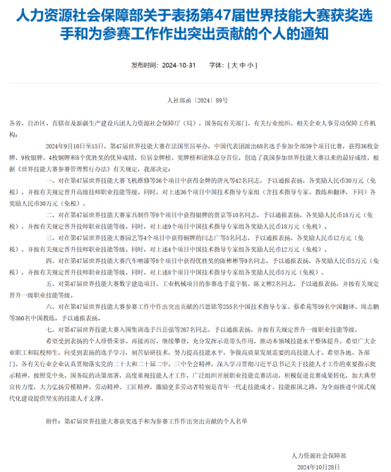 2024年11月1日,人力资源社会保障部对第47届世界技能大赛获奖选手和为参赛工作作出突出贡献的个人予以通报表扬,捕鱼达人破解版 季剑波、燕传勇、刘雨艳和姜雪程等多位教师获此殊荣。