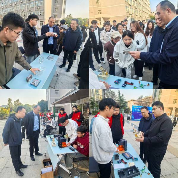 活动现场的科技展示精彩纷呈,各个协会和社团纷纷亮出自己的“看家本领”。工程造价协会通过建筑平面展示,将各类建筑设计以直观清晰的方式呈现出来;汽车协会的多种动力模型车展示吸引了众多目光。模型车不仅展示了不同动力系统的运作原理,还体现了汽车行业在科技创新方面的多元化发展趋势。机器人协会机器人或灵活地完成指定动作,或与人进行有趣的互动,充分展示了人工智能与机械制造相结合所产生的强大魅力。信息学院大学生系统维护协会的智能小车展示也别具特色,能精准地完成各项路径规划任务。自动化协会的自动化停车场模型为解决城市停车难题提供了科技化方案,其高效便捷的停车管理系统和智能化的运作模式,让人看到了自动化技术在日常生活场景中的巨大应用潜力。大学生机械创新协会自组机械臂则体现了机械制造与自动化控制的精妙结合,而激光雕刻技术更是将创意与精确加工完美融合,展现了机械创新领域的多元发展态势。大学生数控装调协会带来的鲁班锁和机电院徽logo 机加工作品工艺精湛,展示了数控装调专业在精密加工方面的高超技艺。食品安全与检验社团通过液体食品中糖度和酸度的快速测定展示,体现了专业技术在食品检测领域的高效应用,让大家看到了保障食品安全背后的科技支撑。三叶绿色新材料社团展示自制脸盆,其承重性能出色,承载一人毫无压力,彰显社团创新实力。