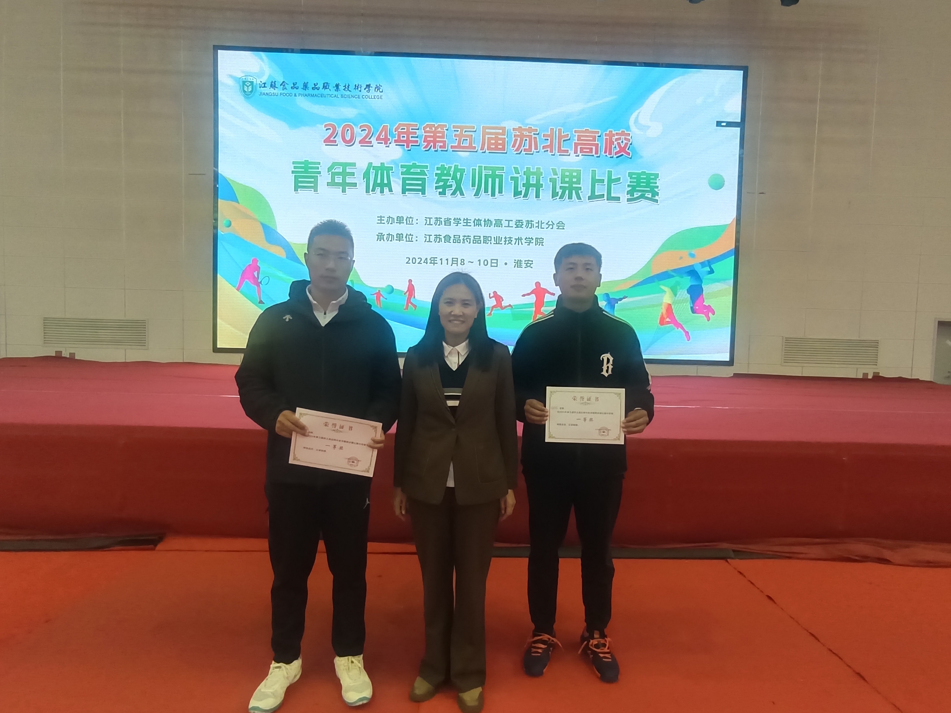第五届苏北高校青年体育教师讲课比赛于2024年11月8-10日在江苏食品药品职业技术学院举行,捕鱼达人破解版 教师张兴德、蒋国用报名参赛。在宋广侠教授的带领与指导下,两位青年教师凭借卓越的教学设计和出色的教学表现在此次讲课比赛中脱颖而出,均荣获一等奖。