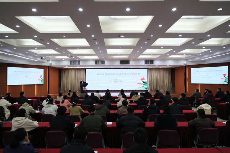 曲建武教授结合自身思想政治教育和辅导员工作的心路历程,围绕大学文化、思想政治、人民满意、学生成长四个视角深刻阐释了辅导员的角色定位,并结合自身丰富的育人工作经验,聚焦思想理论教育和价值引领、少数民族学生教育与管理、网络思想引领、学生干部和学生党员教育引领、学生人生规划、宿舍文化建设、法治教育、家校合力、淡泊名利、以情感人、强身健体十个方面深入浅出地讲述了如何开展辅导员工作。报告过程中,一张张珍贵温馨的照片,一个个影响深远的育人故事,一段段与学生诚挚交流的记录,曲教授用实际行动诠释了一名“仍然在路上”的高校思政工作者的楷模风范,展现了一名优秀共产党员坚定的理想信念。他强调,做一名辅导员,心系学生、陪伴学生、服务学生、把学生培养好,是功在当代、利在千秋的崇高事业。他勉励全体辅导员要始终牢记“为党育人、为国育才”的拳拳初心,在辅导员岗位上加强理论学习和自我教育,坚持向榜样学习,脚踏实地做好育人工作的最后一公里。