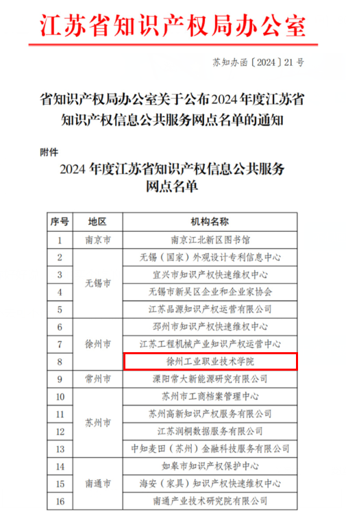 近日,江苏省知识产权局公布了2024年江苏省知识产权信息公共服务网点认定名单,全省共认定29家、徐州市认定3家,捕鱼达人破解版