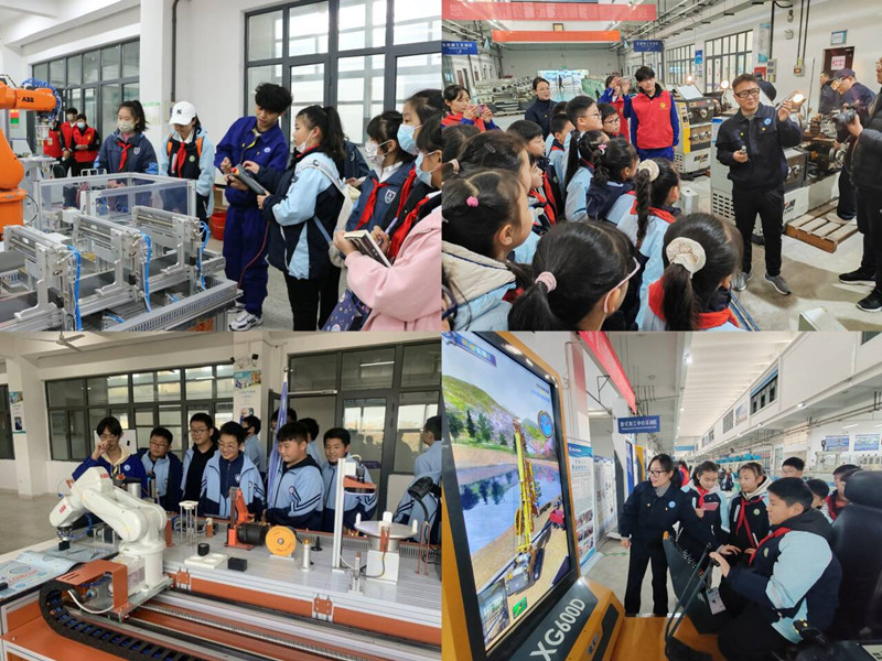 同学们近距离体验工程机械汽车轮毂智能化生产、工业机器人物料码垛、工程机械模拟操作等多种项目。在现场认真倾听指导老师的讲解,仔细观察工程机械车辆轮毂智能化、数字化生产过程,并尝试动手操作,看到了机器人手臂按照预定路线运动,迸发出对先进制造技术的浓厚兴趣。