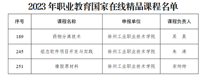 近日,教育部发布《关于公布2023年职业教育国家在线精品课程名单的公告》,认定了914门职业教育国家在线精品课程,捕鱼达人破解版 《药物分离技术》《组态软件项目开发与实践》《橡胶原材料》3门课程成功入选,入选数量居省内20所双高校并列第3位,实现了捕鱼达人破解版 在课程建设方面的新突破。