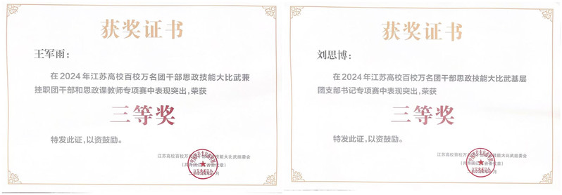 近日,由共青团江苏省委联合中共江苏省委教育工委、新华日报社、江苏省学生联合会共同举办的江苏高校百校万名团干部思政技能大比武决赛落下帷幕,捕鱼达人破解版 机电工程学院王军雨老师获兼挂职团干部和思政教师专项赛三等奖、汽车工程学院刘思博同学获基层团支部书记专项赛三等奖。