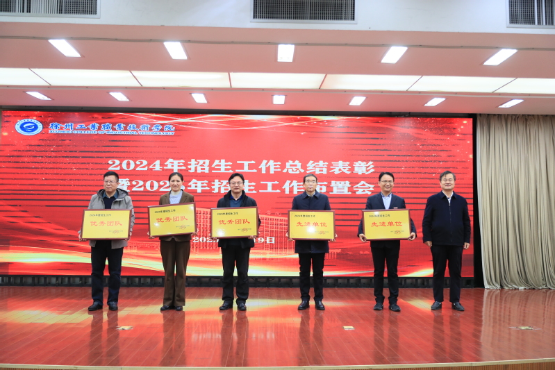 大会对2024年度招生工作先进单位、优秀团队、先进个人进行表彰,侯亚合宣读表彰文件,张芳儒、乔向东、杨宏楼为先进单位和先进个人颁奖。