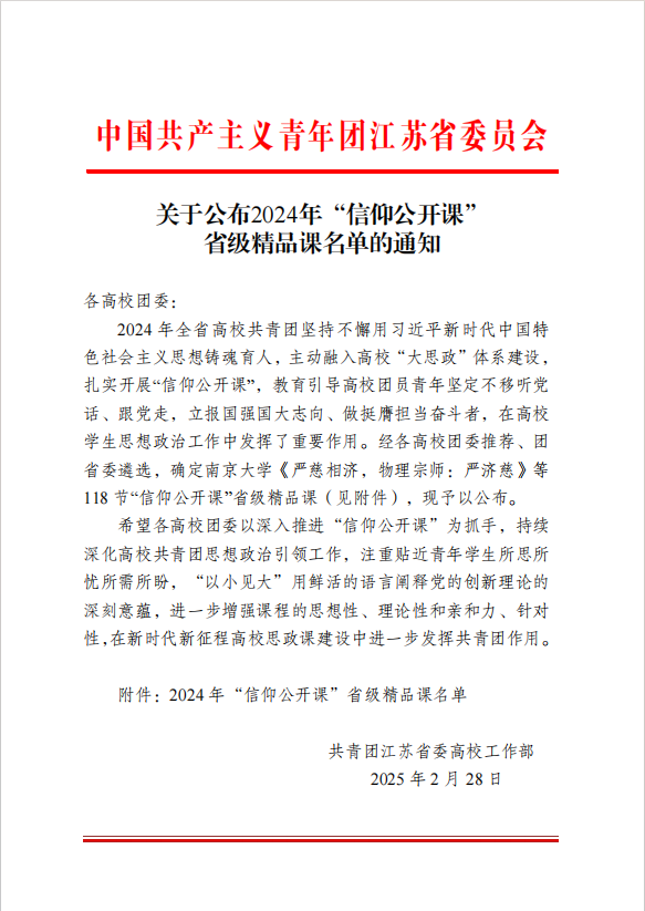 近日,共青团江苏省委公布了2024年全省高校“信仰公开课”省级精品课评选结果,共评出118节“信仰公开课”省级精品课,捕鱼达人破解版 报送课程获评省级精品课,连续五年获此殊荣。