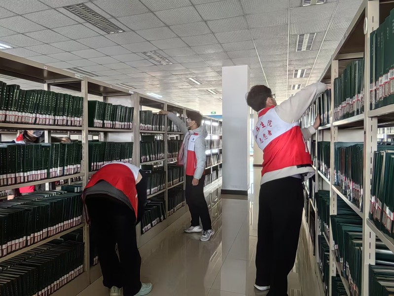 在智能借阅区,志愿者们化身“向导”,耐心指导读者操作自助设备,用专业服务化解技术难题,让智慧阅读更高效。在图书整理过程中,在图书馆老师的指导下,志愿者们按照索书号将图书有序地排列放置于相应的书架上;并认真负责地擦拭书架,不放过任何一处积尘,力求让每一层书架都焕然一新。