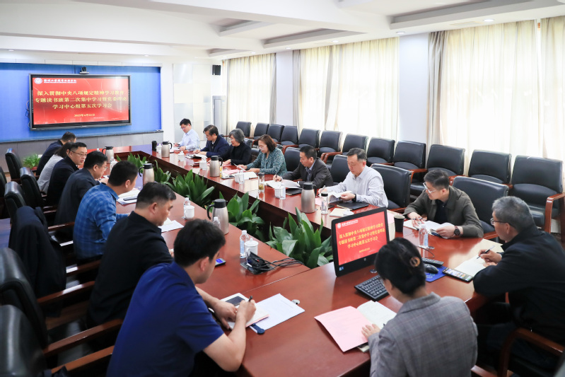 4月22日,党委理论学习中心组在行政楼三楼会议室召开深入贯彻中央八项规定精神学习教育专题读书班第二次集中学习暨党委理论学习中心组专题学习会。校党委理论学习中心组成员参加学习,会议由党委书记刘莹主持。