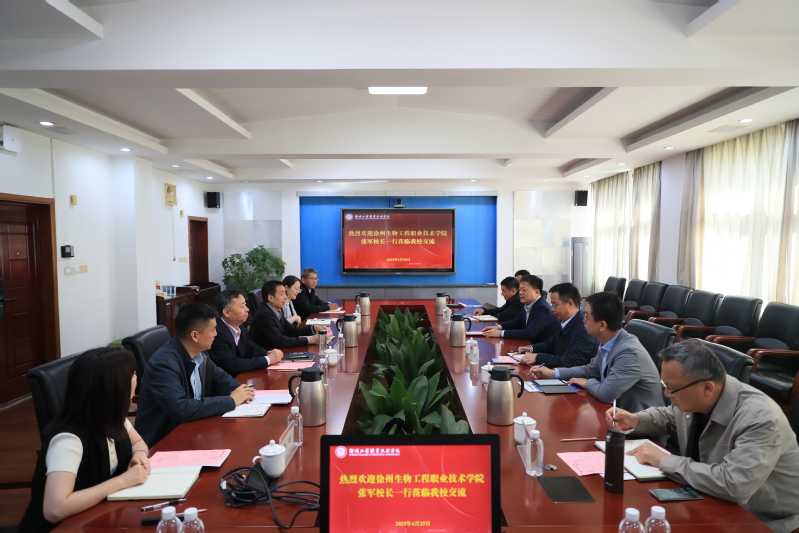 近日,徐州生物工程捕鱼达人破解版 校长张军一行6人来捕鱼达人破解版 开展工作交流。校长鲍桂楠、副校长孙健身,党政办、学工处等相关部门负责人参加座谈交流。
