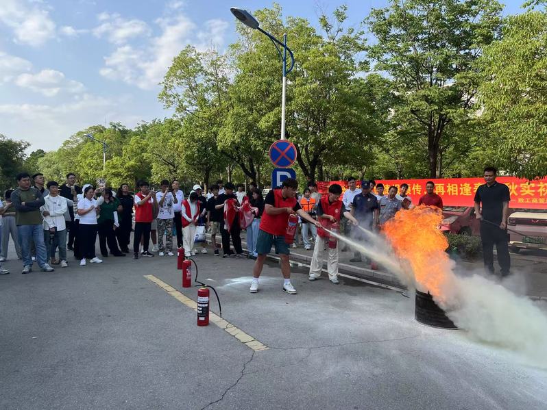 消防实战零距离,应急技能握手中。消防员细致拆解灭火器、消防栓及防烟面罩的使用要领,并邀请师生动手操作。“一提二拔三瞄四压”,在消防员手把手的指导下,多位师生初次体验了灭火器扑灭油盆起火的紧张过程。面对升腾的“火蛇”,参与者沉着应对,成功扑灭火源,赢得围观师生阵阵掌声,应急实践能力在演练中扎实提升。