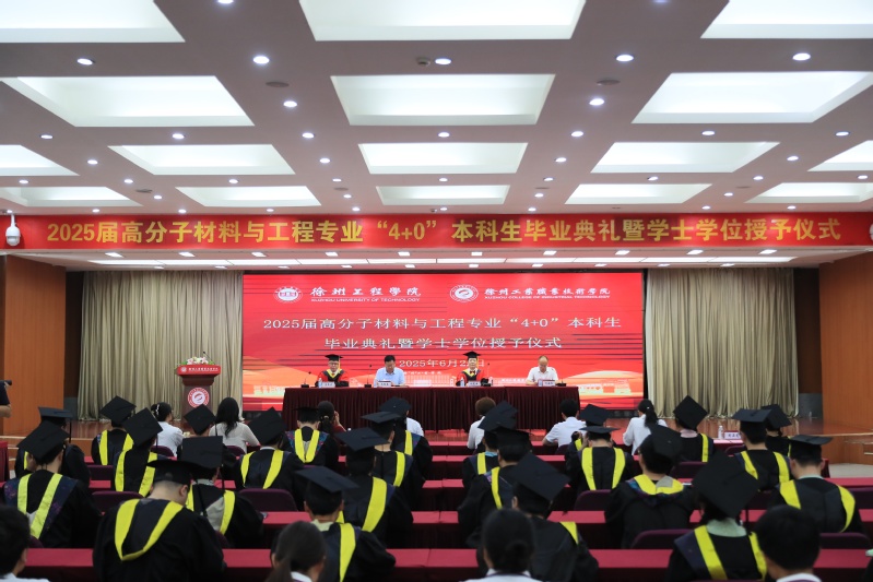 徐州工程学院材料与化工学院院长、校学位评定委员会委员庄文昌教授宣读了徐州工程学院学位评定委员会对28名2025届“4+0”本科毕业生授予学士学位的决定。徐州工程学院材料与化工学院党委书记胡美丽教授为毕业生颁发毕业证书;徐州工程学院材料与化工学院院长、校学位评定委员会委员庄文昌教授为毕业生颁发学位证并拨穗。