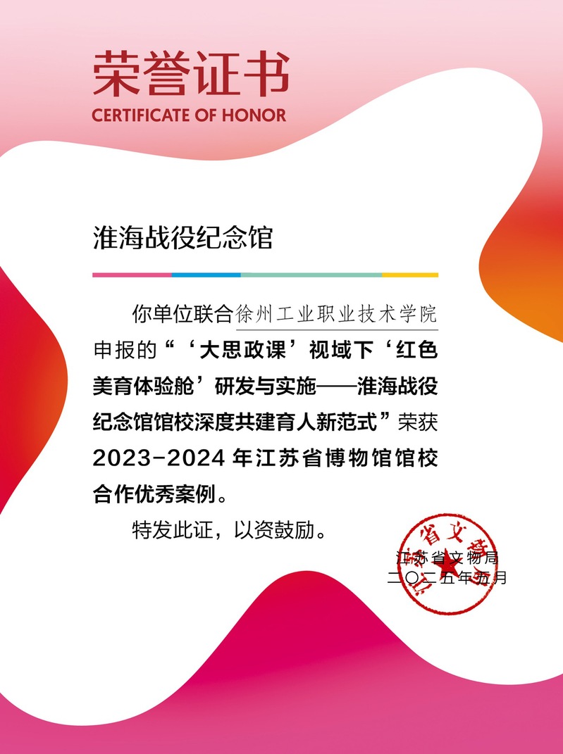 近日,江苏省文化和旅游厅公布2023-2024年度馆校合作优秀案例评选结果,捕鱼达人破解版 与淮海战役纪念馆联合申报的《“大思政课”视域下“红色美育体验舱”研发与实施——淮海战役纪念馆馆校深度共建育人新范式》项目脱颖而出,成功入选全省20个优秀案例之一。