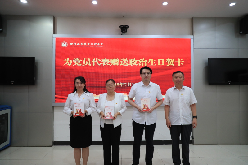 党委委员、副校长孙健身为7月份入党的党员代表赠送“政治生日贺卡”。