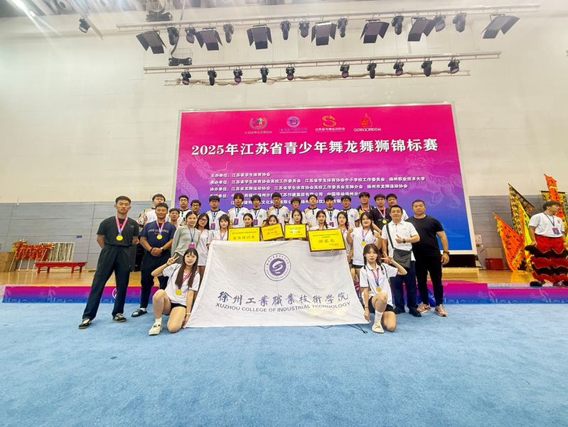 体艺部高度重视此次比赛,教练团队精雕训练计划,龙狮队队员们在三伏酷暑中坚持每日三练,一遍遍打磨动作、熟稔套路,将龙狮运动的力与美刻进每一次托举腾跃。赛场上,队员们无畏强手、奋勇争先,以昂扬姿态绽放徐工职院学子们的青春锋芒,用实力证明了龙狮队的训练成果,展现了大学生传承和弘扬传统文化的时代担当。
