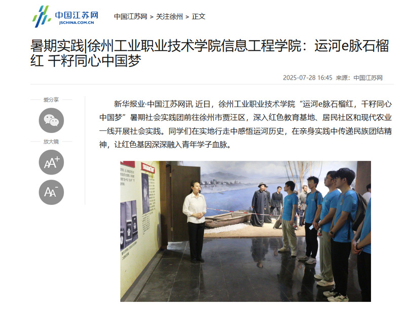 新华报业·中国江苏网讯 近日,徐州工业捕鱼达人破解版 “运河e脉石榴红,千籽同心中国梦”暑期社会实践团前往徐州市贾汪区,深入红色教育基地、居民社区和现代农业一线开展社会实践。同学们在实地行走中感悟运河历史,在亲身实践中传递民族团结精神,让红色基因深深融入青年学子血脉。