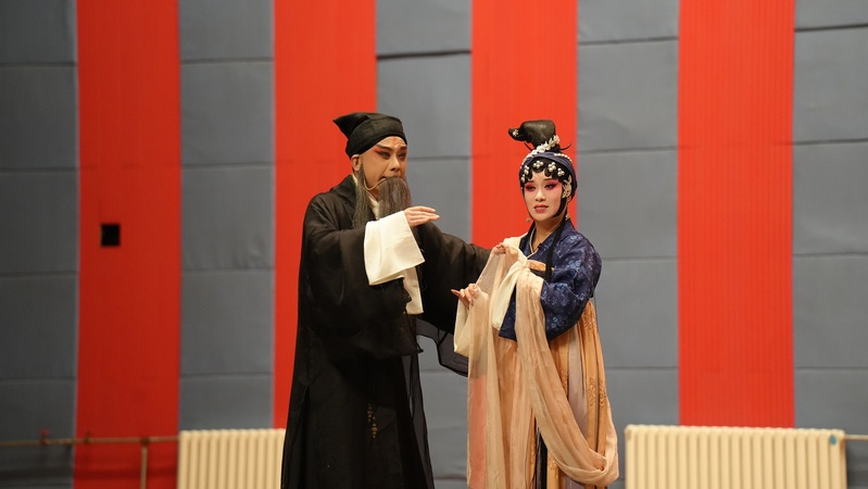 次折《除夕》聚焦诗人贾岛的人生片段,通过其与青年香客的精彩对戏,展现了唐代文人特有的精神追求与内心世界。演员们准确把握人物性格特征,在诗意对白与戏剧冲突中,将传统文化中“诗禅一味”的哲学思考自然呈现。