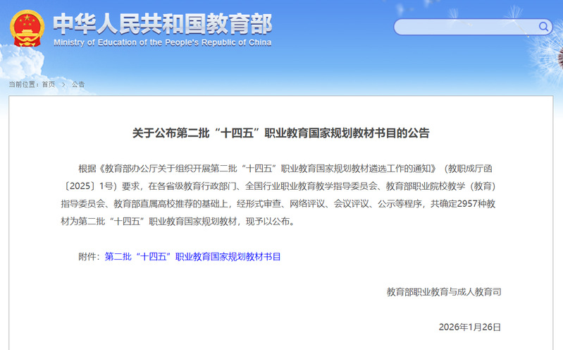 近日,教育部职业教育与成人教育司正式公布第二批“十四五”职业教育国家规划教材书目,捕鱼达人破解版 教师主编的5部教材成功入选。此前,捕鱼达人破解版 已有7部教材入选第二批“十四五”职业教育江苏省规划教材,累计12部教材入选国、省级规划教材。这是捕鱼达人破解版 扎实推进中国特色高水平高职捕鱼达人破解版 和专业建设,紧密对接新时代职业教育改革要求,在教育教学改革与教材建设领域取得的又一标志性成果,充分彰显了捕鱼达人破解版 教材建设的雄厚实力与育人成效。