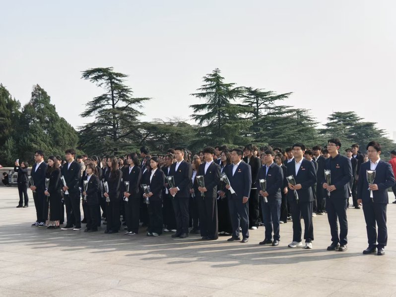 烽火燃山河,丹心照汗青。苍松翠柏掩映下的淮海战役烈士纪念塔庄严肃穆,活动在全体师生齐唱国歌中拉开帷幕,铿锵有力的歌声表达了对祖国的深情热爱与对先烈的崇高敬仰。随后,校主持人协会同学深情讲述革命先辈浴血奋战、舍生忘死的感人事迹,令在场师生深受教育。在纪念塔前,全体青马学员肃立默哀,团委学生兼职副书记熊思晴带领大家重温入团誓词,誓言铮铮、信念如磐;青马学员代表姚星宇致悼念词,表达继承先烈遗志、勇担时代使命的坚定决心。现场师生有序敬献鲜花、寄托哀思,并缓步绕塔瞻仰,纷纷表示将铭记英烈事迹、传承英烈精神,坚定投身中国式现代化伟大实践的信念。